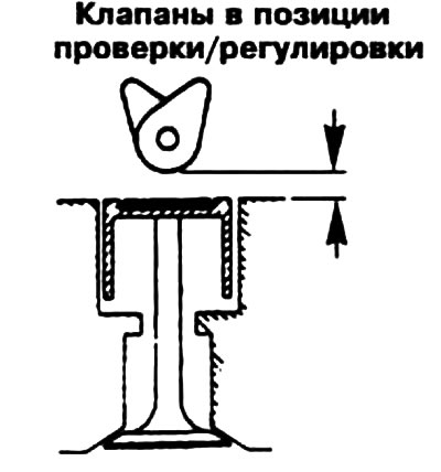 Плъзнете плосък габарит между гърбицата и тарелката и измерете хлабината на клапана. Определени стойности за хлабини на клапаните (студен двигател):