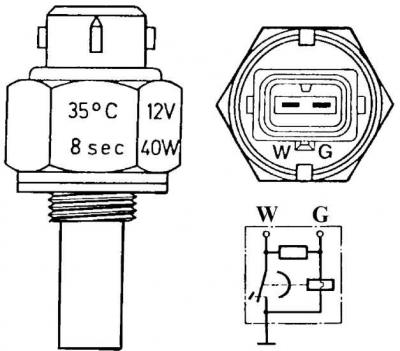 4. При необходимости можно снять термовременной выключатель с двигателя, отключив разъем и вывинтив выключатель, и проверить сопротивление между контактами. На одной из граней термовременного выключателя выбиты температура включения – 35°C и время включения – 8 секунд при -20°C.