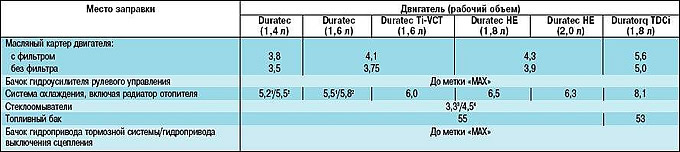 Форд Фокус 2 2004-2010: Заправочные объемы
