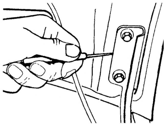 - Отвинтите петельные винты на капоте, а также регуляторе капота и вместе с помощником снимите затем капот.