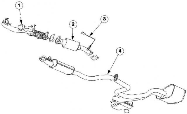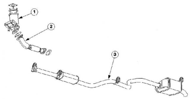 | 1 — Выпускной коллектор с гибкой промежуточной трубкой,