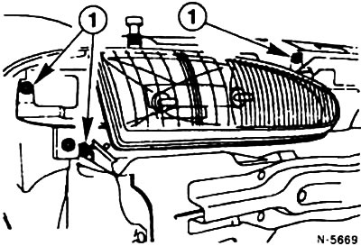 Внимание! Если заменяется только одна фара, распилите пластмассовую опору в середине между обеими маркировочными перегородками. При сборке старую и новую половинки опоры соедините алюминиевым держателем. Держатель закрепите двенадцатью потайными заклепками в частично предварительно рассверленных отверстиях (8 штук).