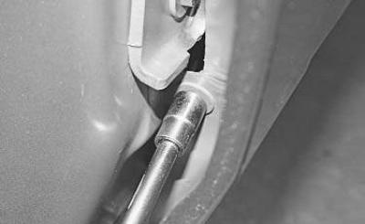 10. Изнутри крыла выверните болт его крепления к передней стойке кузова.