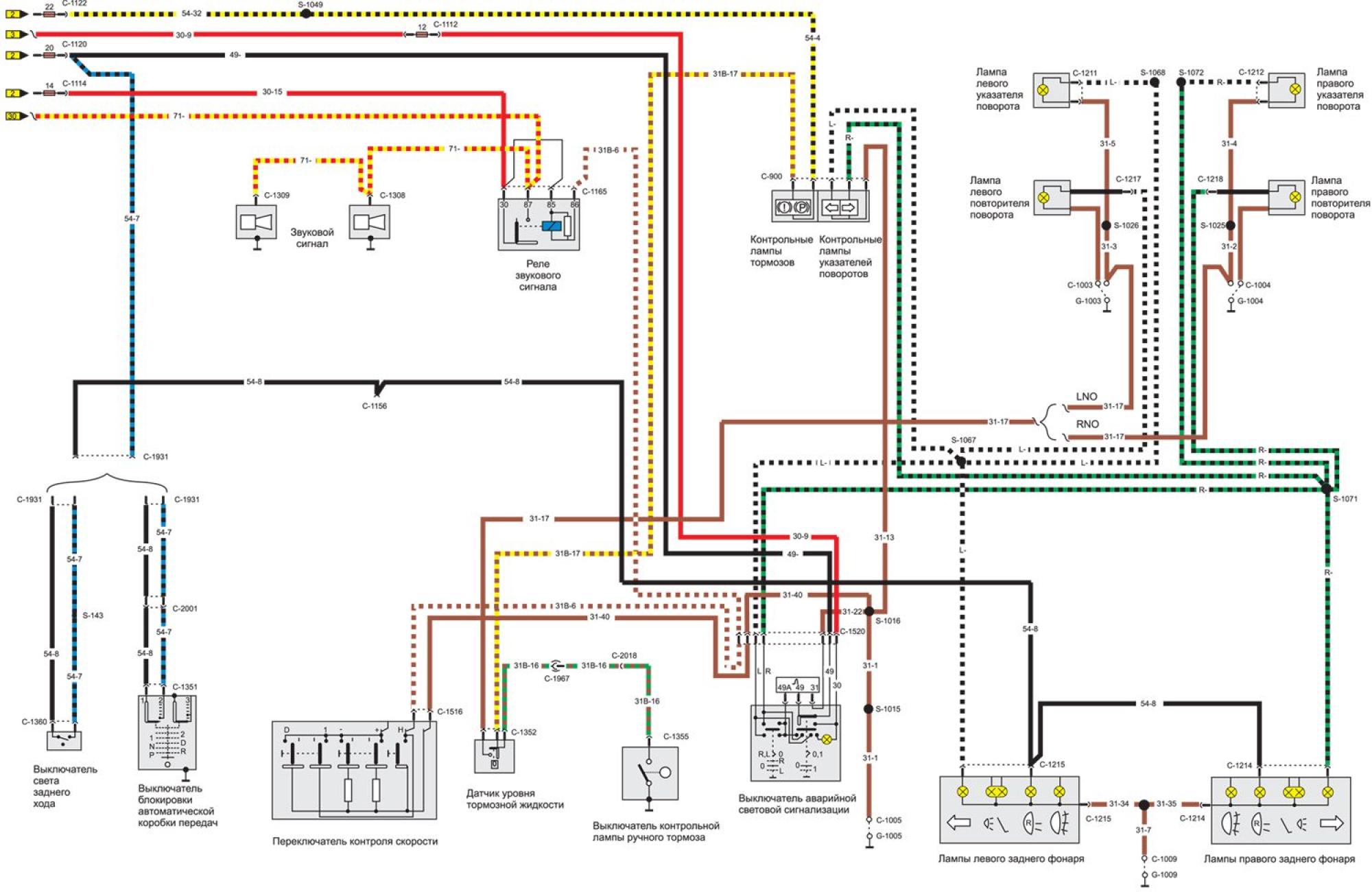 Схема электрического контура сигнализации, поворотов и контроля систем