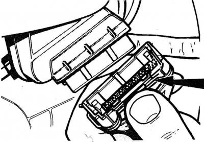 3. Отсоединить заслонку и провода шагового двигателя. Для отсоединения разъема шагового двигателя необходимо отжать стопорный зажим (указан стрелкой).
