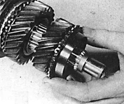 3. Сдвинуть шестерню второй передачи через переднюю часть первичного вала и снять синхронизирующее кольцо второй передачи.