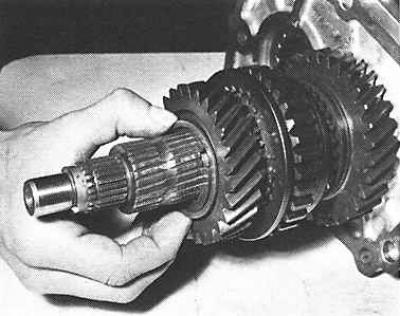 6. Снять блок синхронизации пятой передачи и ведомую шестерню пятой передачи с первичного вала.