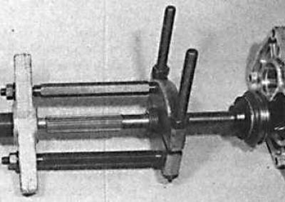 9. При необходимости снять стопорное кольцо и извлечь подшипник из среднего картера, пользуясь металлической трубкой. Снять синхронизаторы, предварительно отметив относительное расположение ступицы и втулки. Сдвинуть втулку со ступицы и снять блокировочные стержни и пружины.