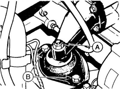 А – гайка крепления подушки к кронштейну подвески двигателя,