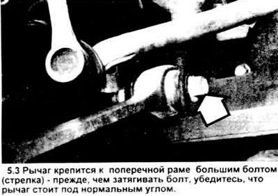 3. Отвинтите болт и гайку с внутреннего шарнира рычага (см. рисунок).