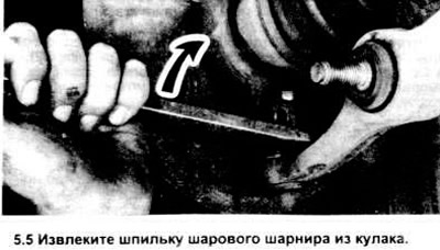 5. Отожмите вниз рычаг, чтобы отделить его от поворотного кулака (см. рисунок).