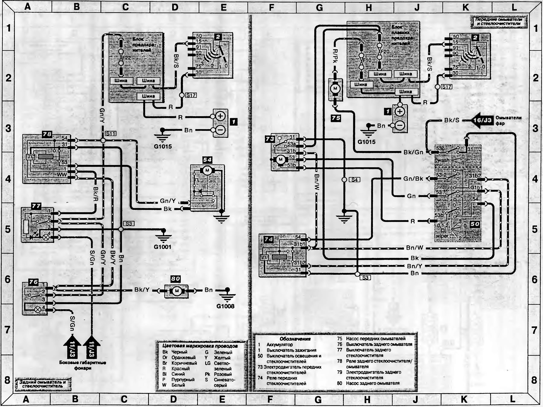 Схема 15. Омыватели и стеклоочистители — модели, изготовленные в 1992-1995 годах (Транзит 2)