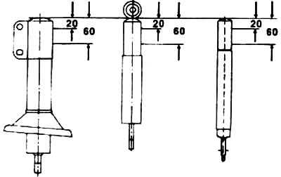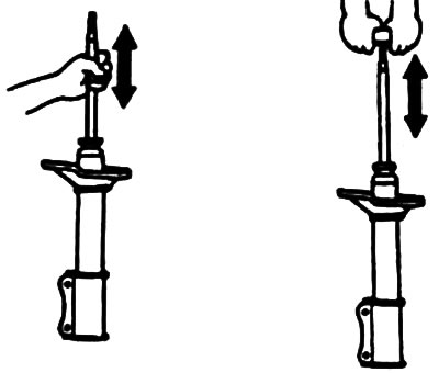 Утримуйте амортизатор у положенні установки його на автомобілі та тричі перемістіть шток з одного крайнього положення в інше. При цьому шток повинен витягуватися з рівномірним зусиллям і утоплюватися без певного зусилля, крім цього, при переміщенні штока не повинно бути сторонніх шумів.